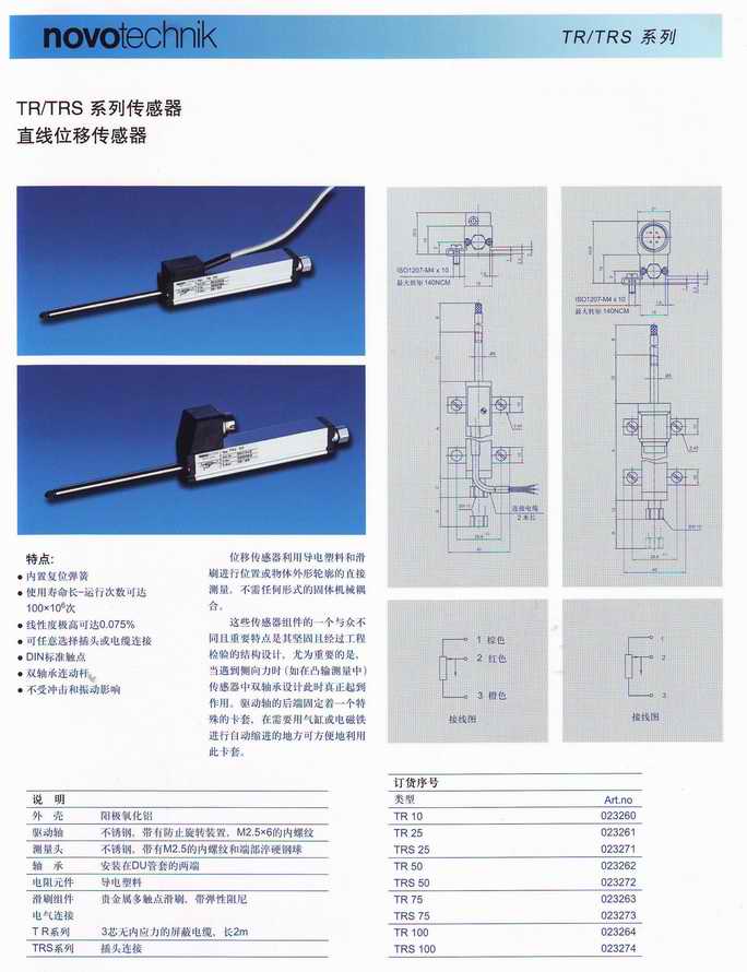 novotechnik TR TRS 直線位移傳感器TR10、TR25、TRS25、TRS50